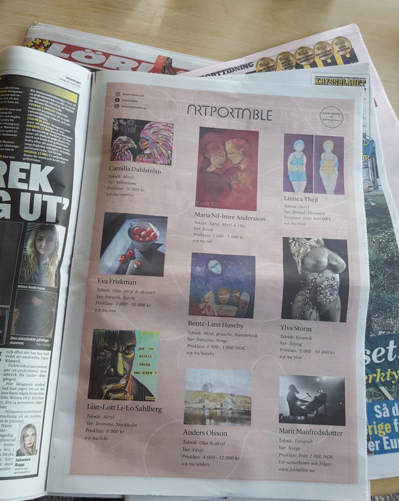 Är med på en helsida av Artportables annons i Aftonbladet den 30 maj